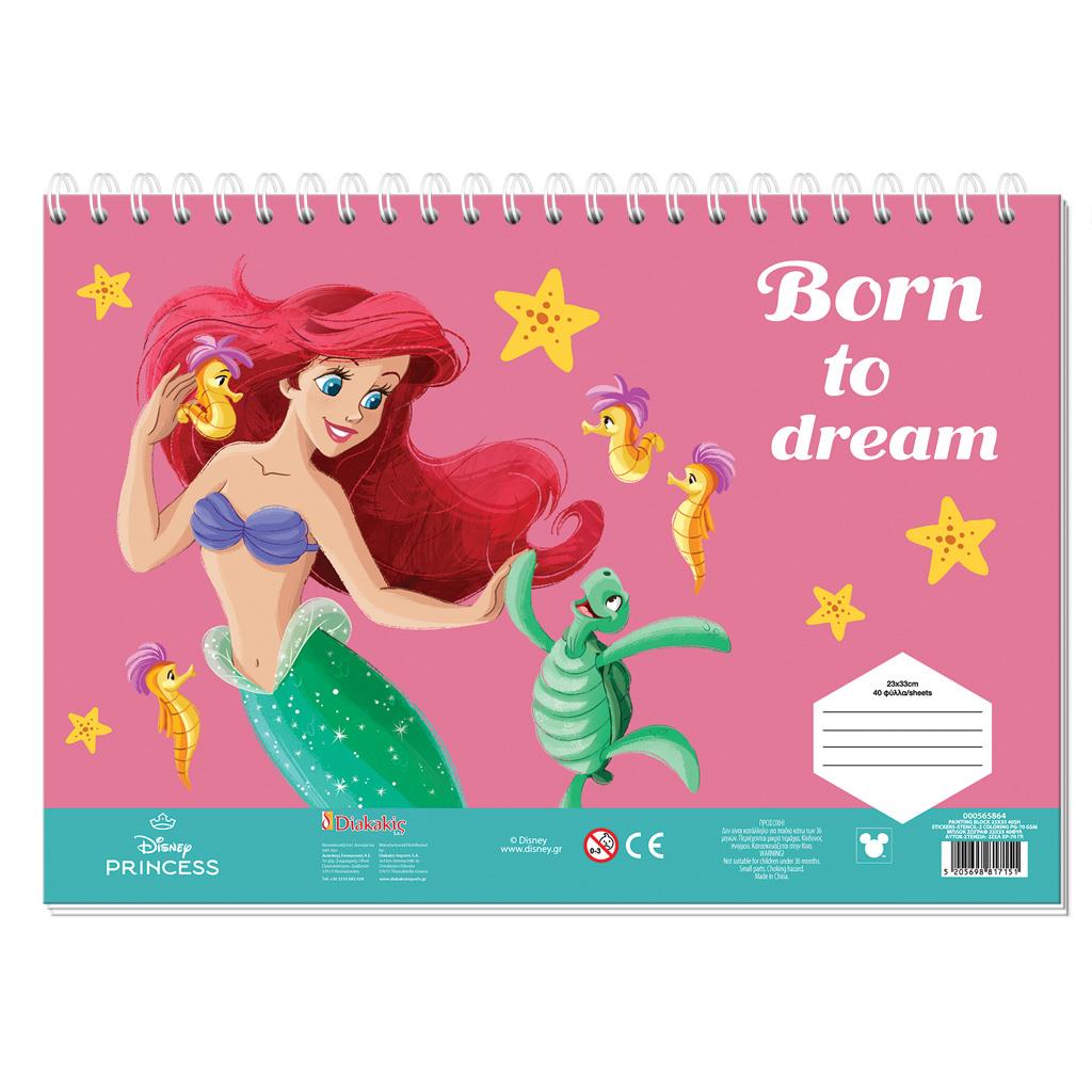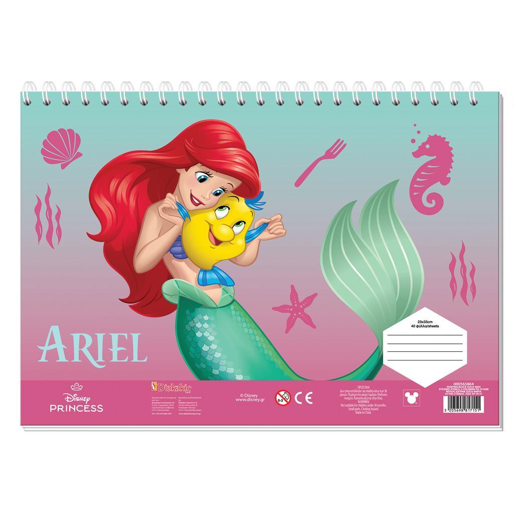 PAINTING BLOCK 23X33CM 40SH STICKERS-STENCIL-2 COLORING PG 2DESIGNS DISNEY PRINCESS ARIEL