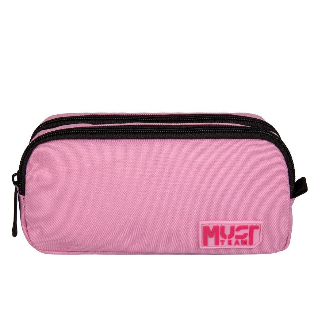 Κασετίνα Βαρελάκι Must Team Monochrome Ροζ Απαλό με Ροζ Έντονο 2 Θήκες