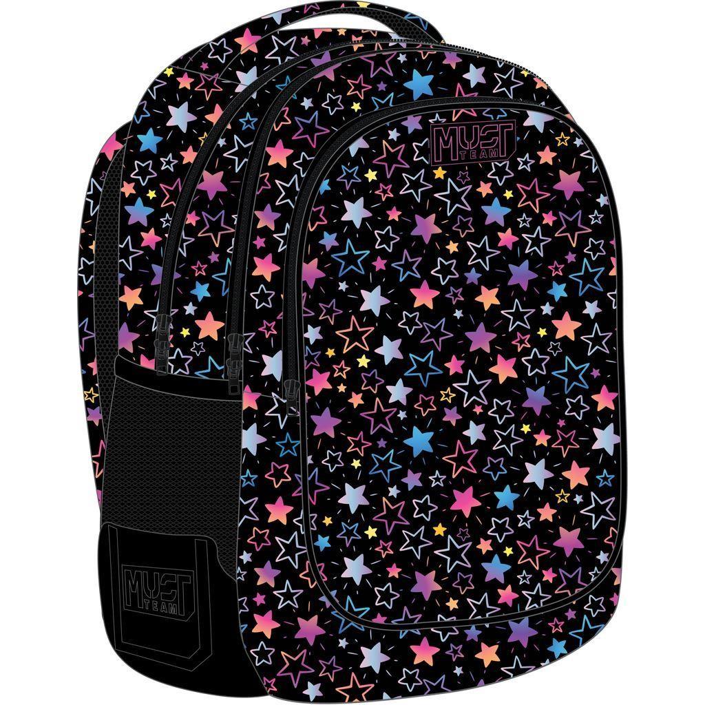 - Η Σχολική Τσάντα Πλάτης Δημοτικού Must Team Hologram Stars διαθέτει 3 ευρύχωρες θήκες (2 κεντρικές θήκες, 1 θήκη στο μπροστινό μέρος) για τα βιβλία, τα τετράδια, την κασετίνα και όλα τα απαραίτητα σχολικά είδη γραφής