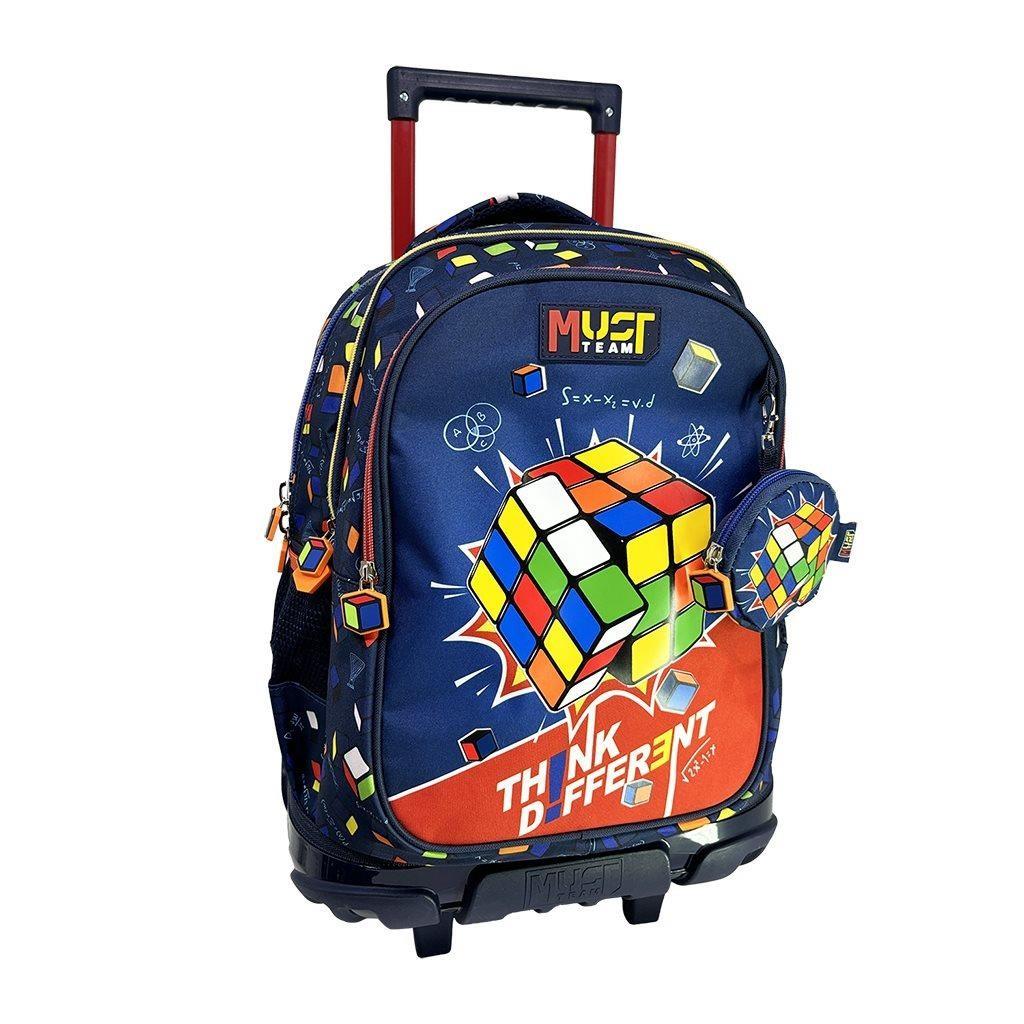 Σχολική Τσάντα Τρόλεϊ Δημοτικού Must Team Think Different με 3 θήκες σε εντυπωσιακό σχέδιο με ανάγλυφη εκτύπωση - σχέδιο κύβος του Ρούμπικ! Πρακτική και ανθεκτική σχολική τσάντα με εργονομικό σχεδιασμό για ασφαλή, άνετη και εύκολη μεταφορά όλων των απαραίτητων σχολικών ειδών στο σχολείο. Μια ξεχωριστή σχολική τσάντα δημοτικού που συνδυάζει σακίδιο πλάτης και τρόλεϊ μαζί!