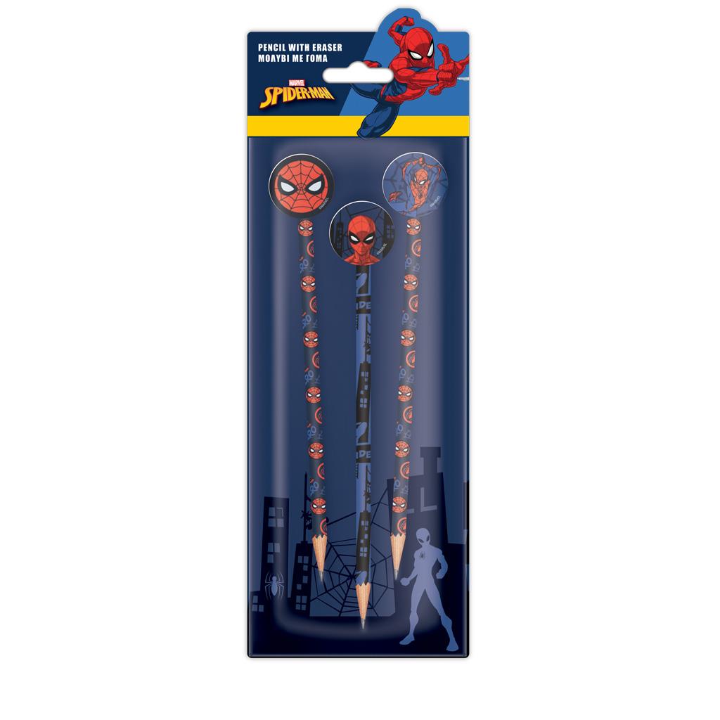 PENCIL WITH ERASER TOPPER 3DES IN BLISTER SPIDERMAN