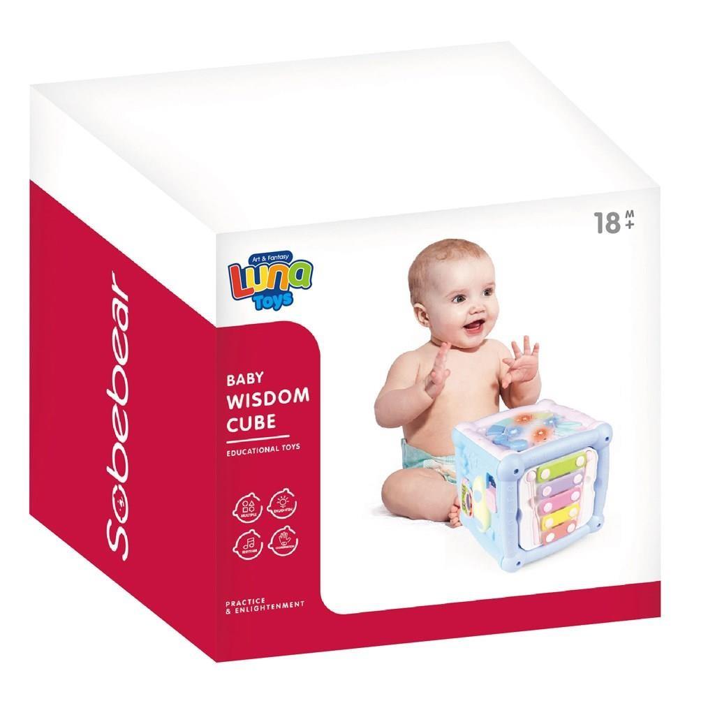 Activity Cube Luna Toys with music and light, ideal baby interactive toy designed to provide endless fun and contribute to the development of audio-visual and motor skills. A fun, melodic and educational toy!