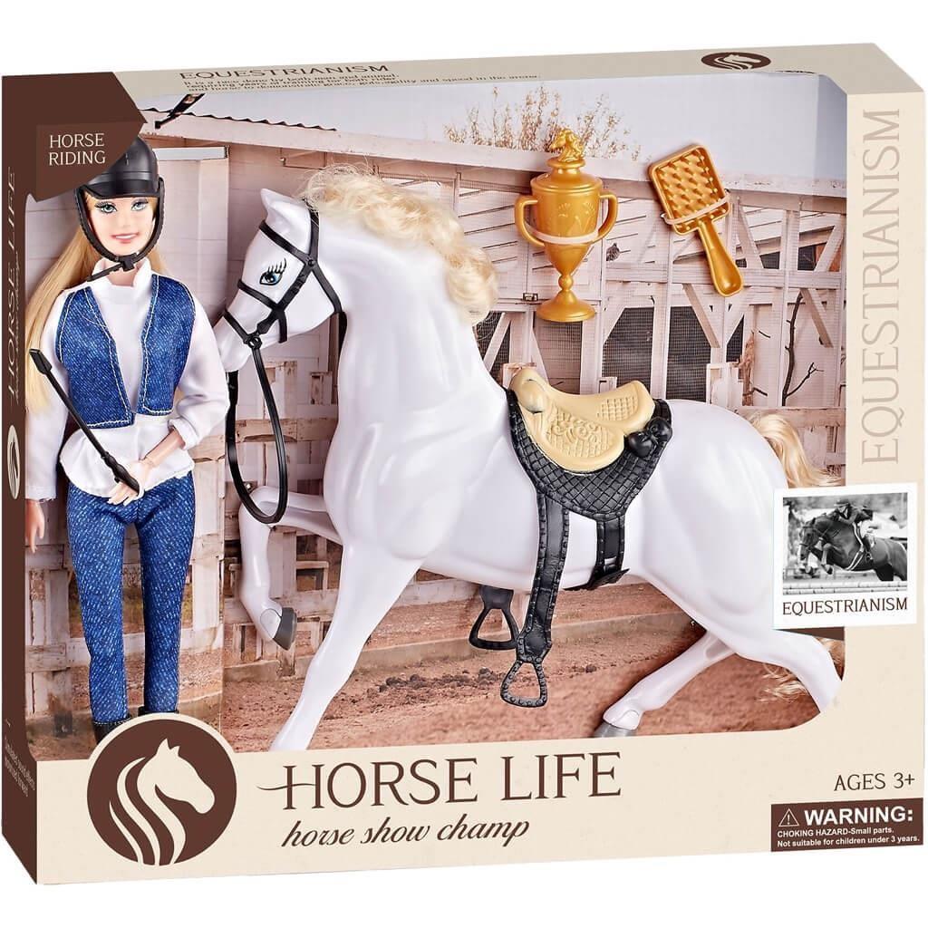 DOLL 29CM WITH WHITE HORSE 38X9X33CM LUNA