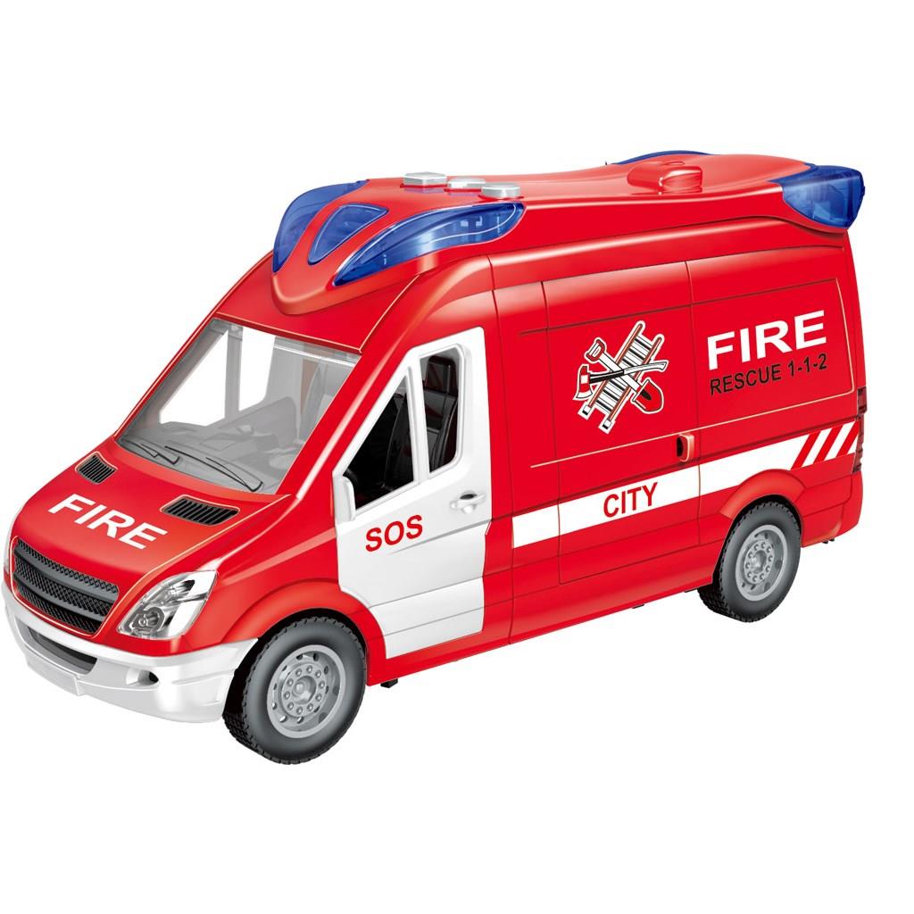 Fire Rescue Van Friction Luna Toys with sound and light, a realistic and fun toy full of action. With a 1:16 scale ratio, the friction Fire Van is equipped with sound and light effects while the friction drive system allows in the Fire Van Vehicle to propel itself forward, without the need for batteries, offering endless hours of fun.