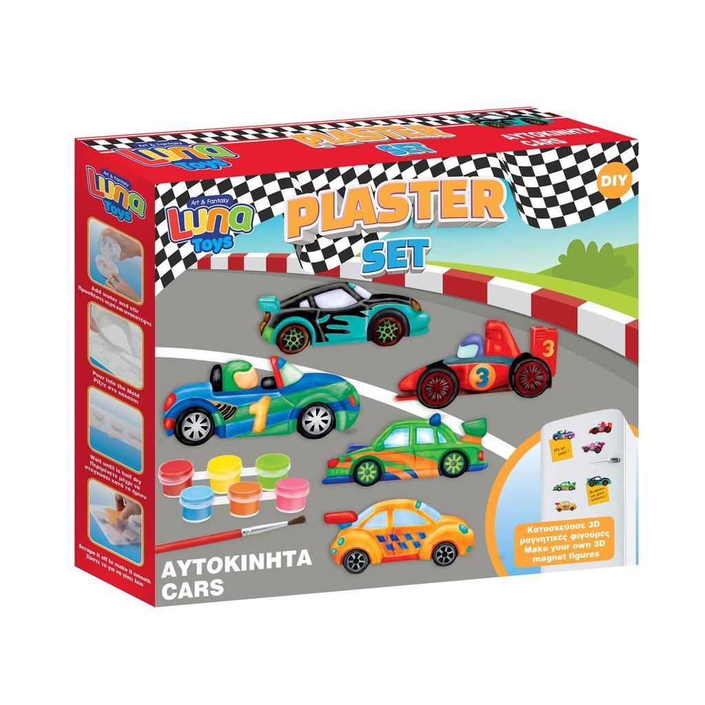 Create your own impressive 3D magnetic Cars with the Plaster Set Cars Luna Toys! Add water and mix the plaster, Pour the plaster into the mold, Color cars and Place magnet on the back !