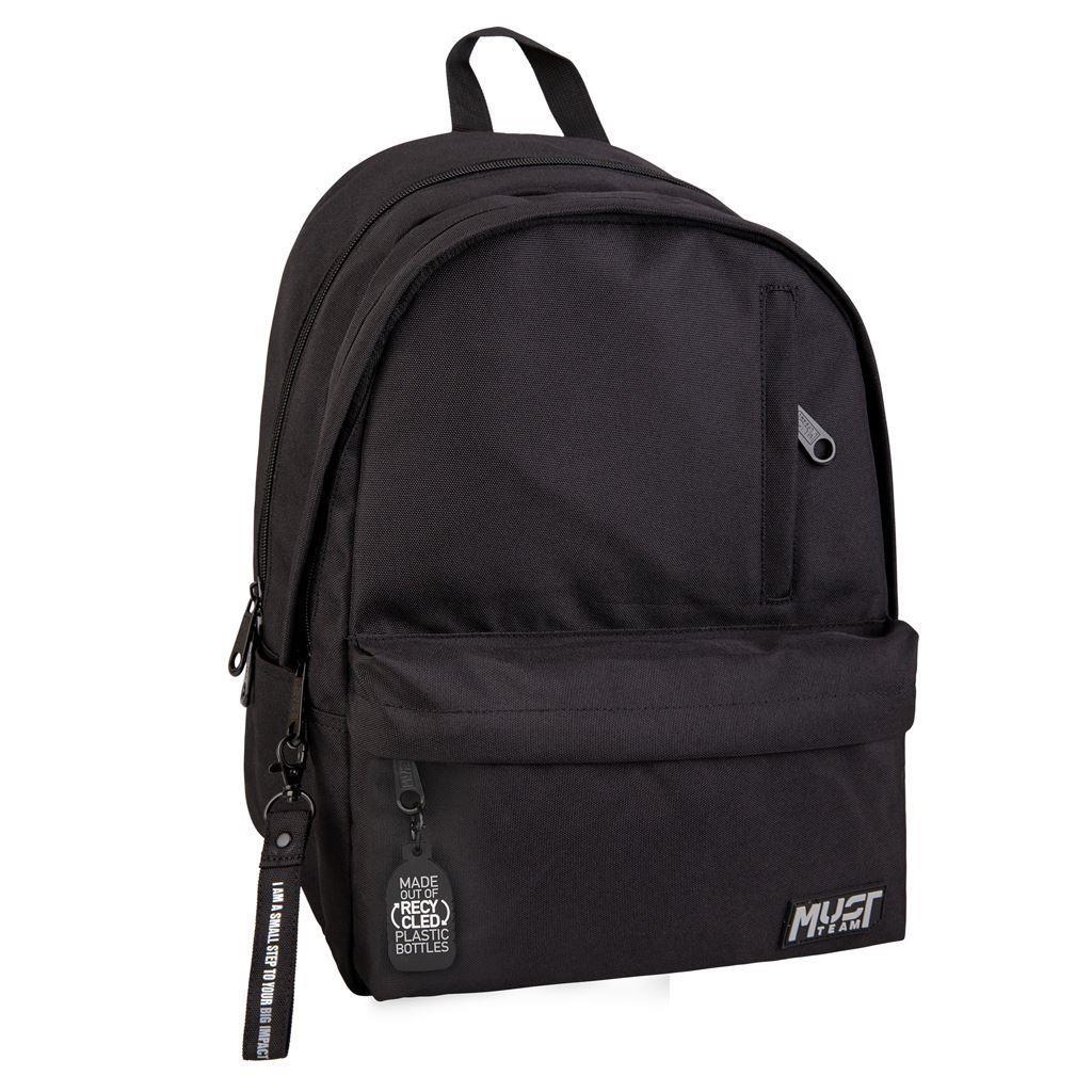 - Backpack Must Team Monochrome rPET Black with Gray 2 Main Cases additionally features 2 front pockets, 1 expandable side pocket and 1 soft-lined inner pocket for better organization and storage of all your essentials