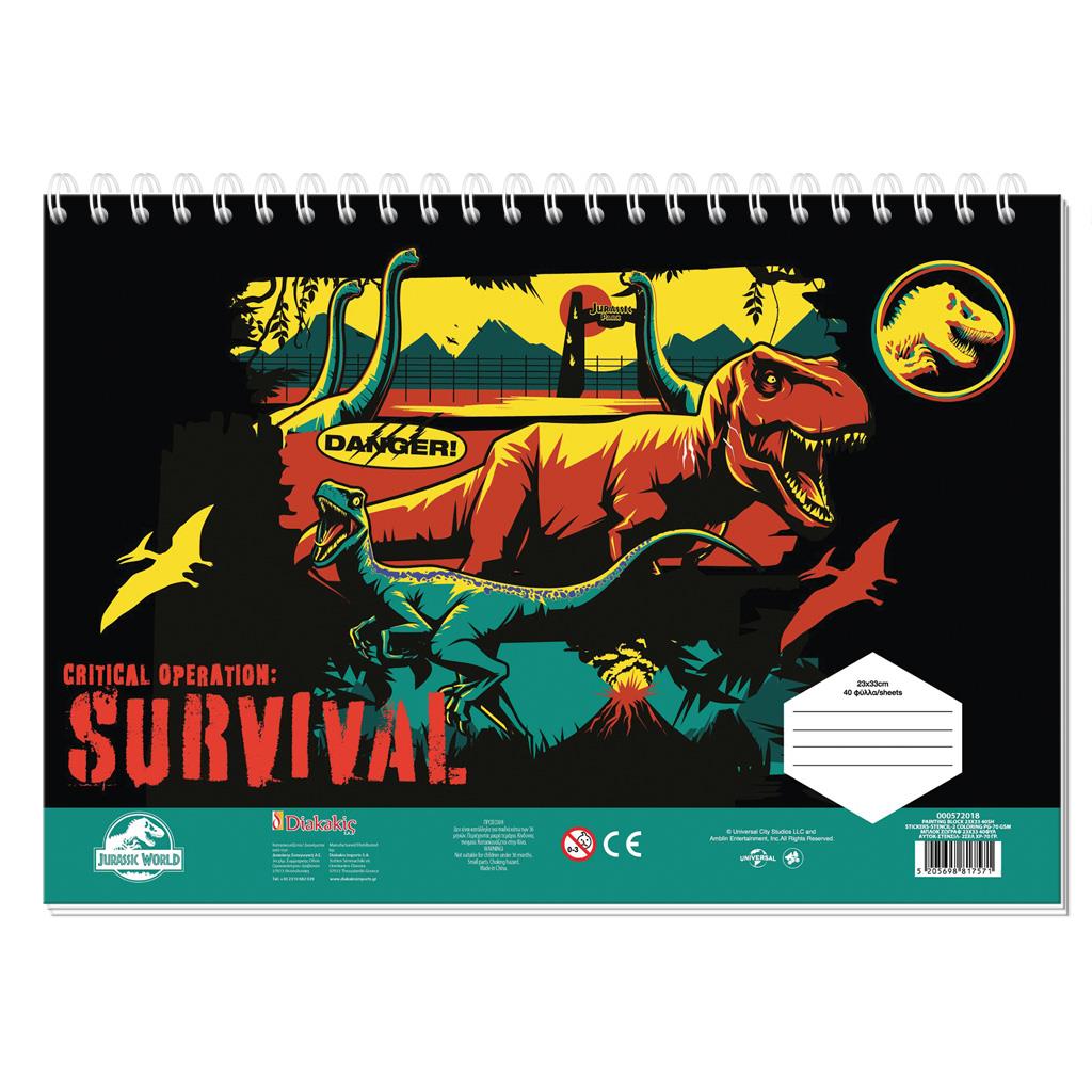PAINTING BLOCK 23X33CM 40SH STICKERS-STENCIL-2 COLORING PG 2DESIGNS JURASSIC