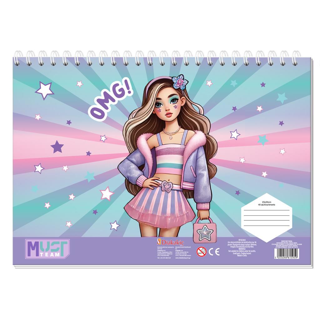 PAINTING BLOCK MUST TEAM 23X33CM 40SH STICKERS-STENCIL-2 COLORING PG 2DESIGNS GIRL 1